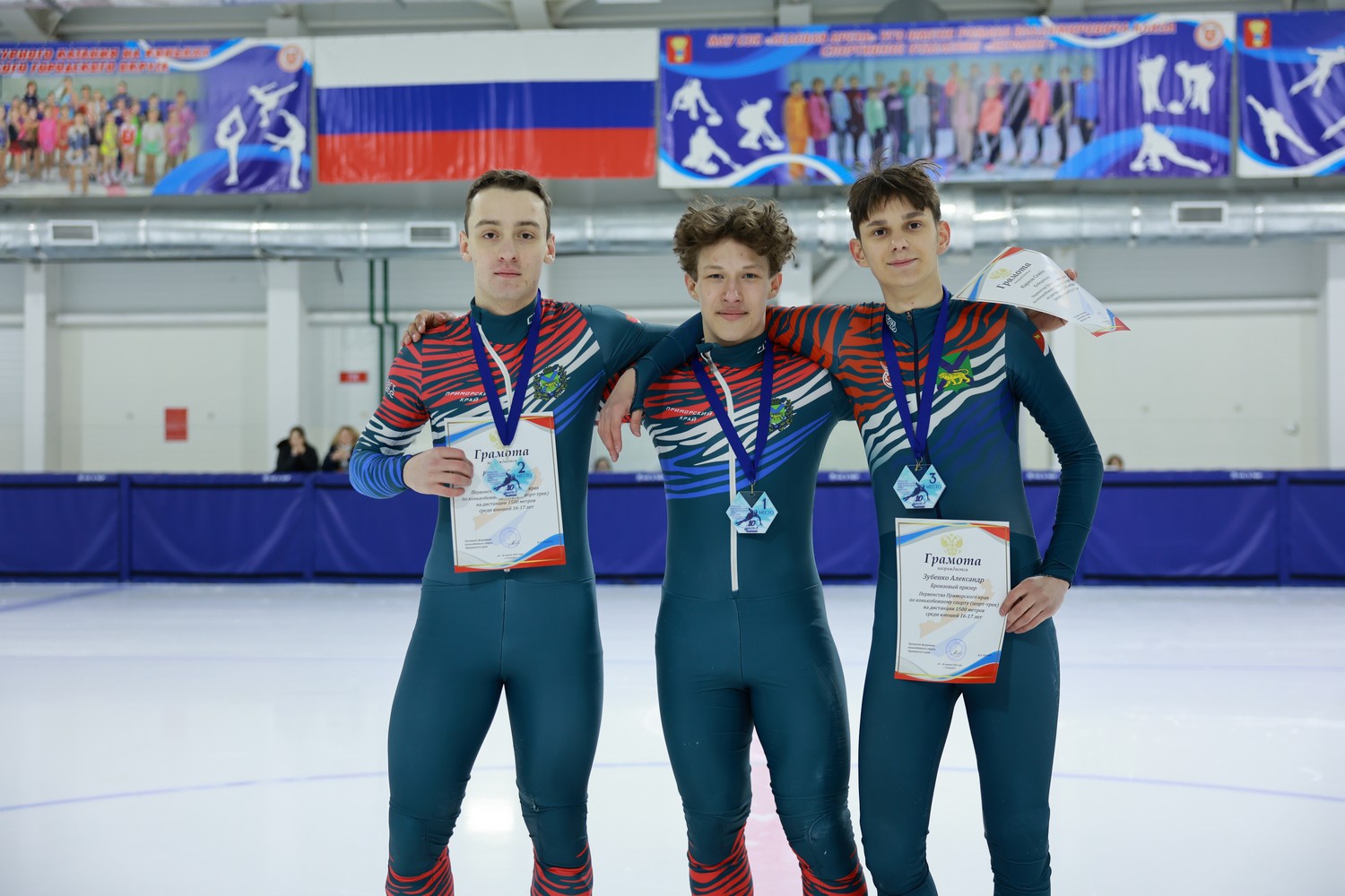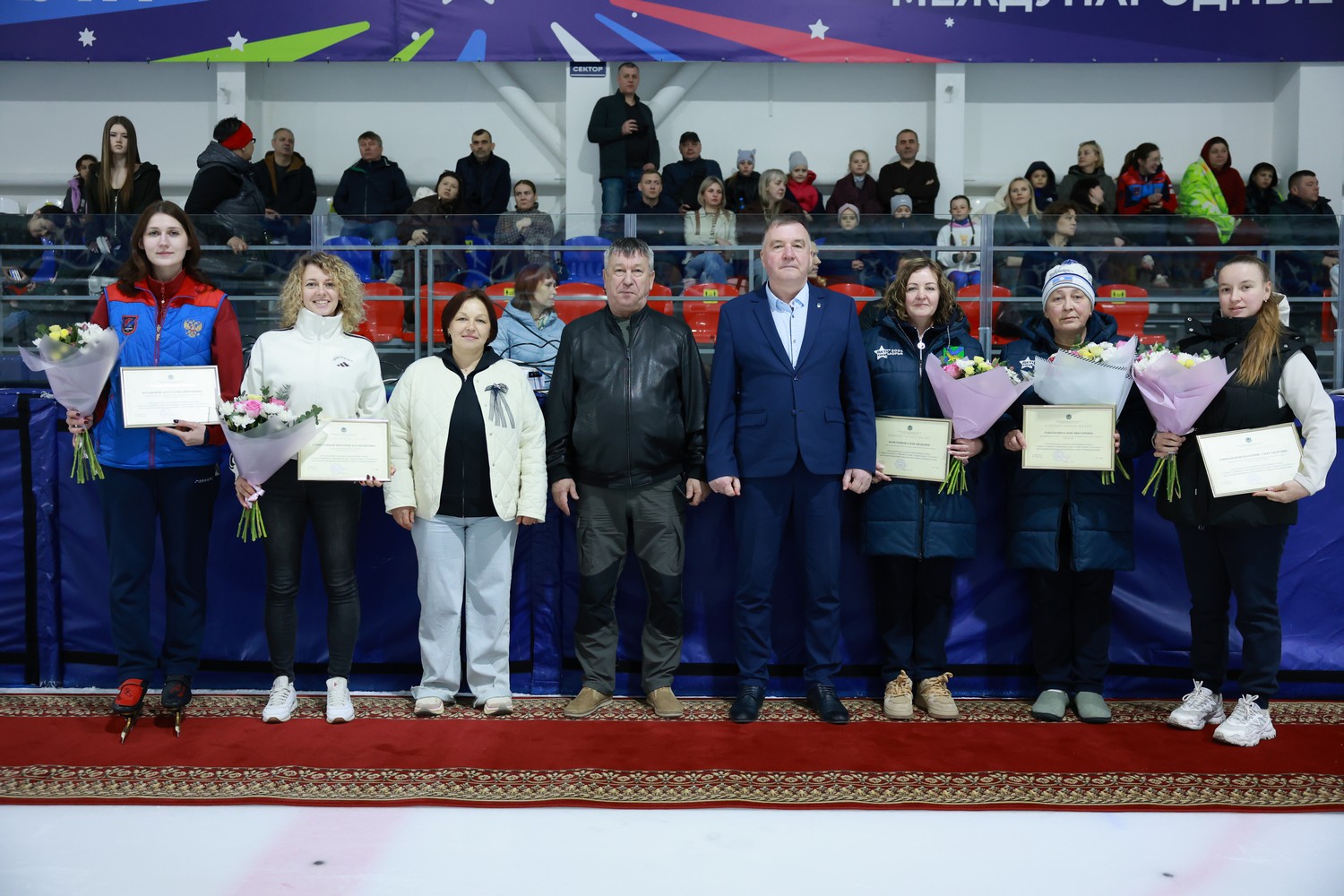 Юрий Грачёв вручил благодарственные письма министерства спорта края за большой вклад в развитие конькобежного спота в Приморском крае тренерам-преподавателям: Екатерине Епифановой, Анастасии Потаповой и Елене Работкевич – спортивная школа Уссурийского ГО, Виктории Сафиуллиной (СШ «Феникс» Артемовского ГО), Елене Почкуновой (Краевая спортивная школа олимпийского резерва, Кавалерово). Также Юрий Грачёв вручил удостоверения и знаки «Мастер спорта России» приморским шорт-трекистам – Семёну Карпову из Уссурийска, Владиславу Колеснику, Матвею Шапоренко из Кавалерово.