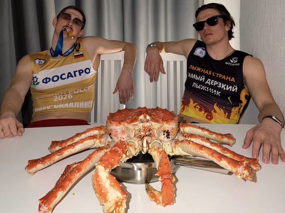 «Он сейчас занят — краба ищет. Наш краб, нашей комнаты, значит, поделится», — добавил лыжник.