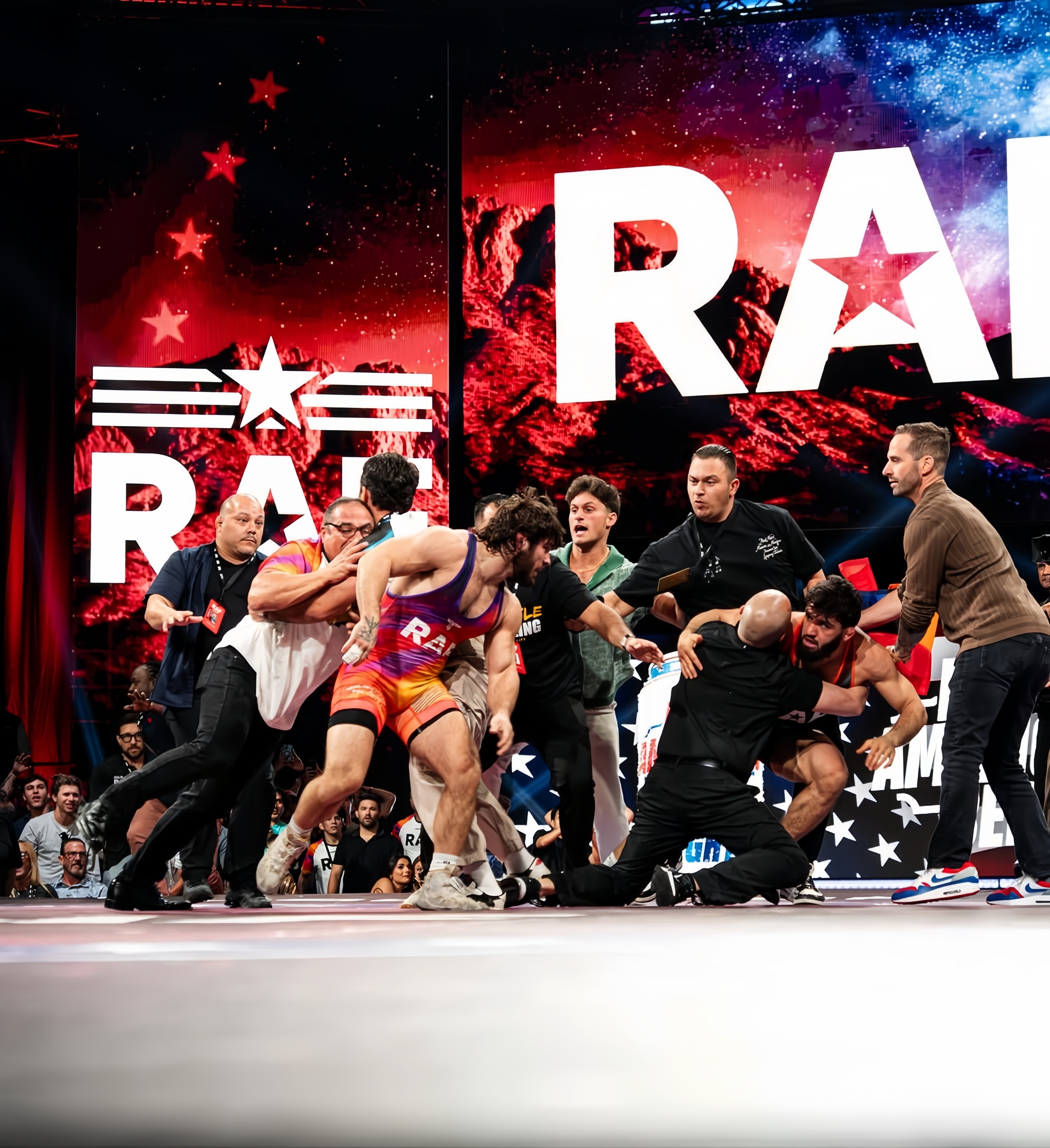 Первый бой между Царукяном и Пулласом состоялся 1 марта на турнире RAF 06 в Аризоне по правилам вольной борьбы и закончился победой россиянина со счетом 5:3. Однако главные события развернулись после финальной сирены: недовольный действиями соперника, который по ходу встречи прибегал к провокациям, тычкам в глаза и даже ударам, Царукян атаковал оппонента, спровоцировав массовую потасовку с участием обоих углов. По словам Царукяна, Пуллас сознательно шел на грязные приемы, чтобы сорвать схватку, так как понимал, что проигрывает.