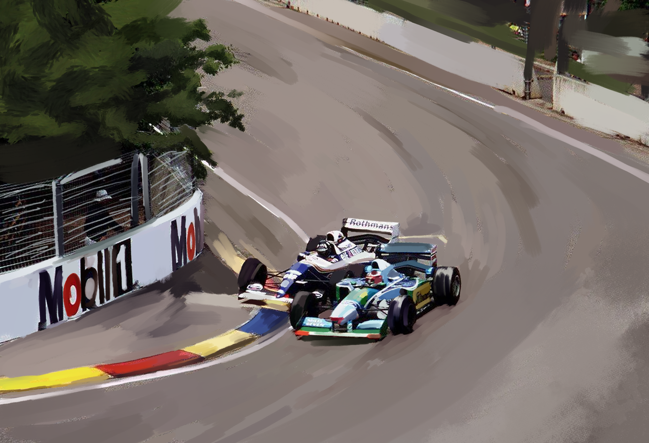 «Сейчас этот эпизод выглядит мучительно медленным и не слишком драматичным. Всем очевидно, что Шумахер не собирался продолжать гонку, но ведь тогда я этого не знал. Я видел, как он возвращается на трек, но не видел, как он перед этим ударился в стену. Мне показалось, что его просто занесло, но оказалось, что его машину перекосило на заднюю правую часть! Я был наивен, полагая, что смогу проскочить. Мы не учитывали, что Михаэль пойдёт на все, чтобы не пропустить меня».