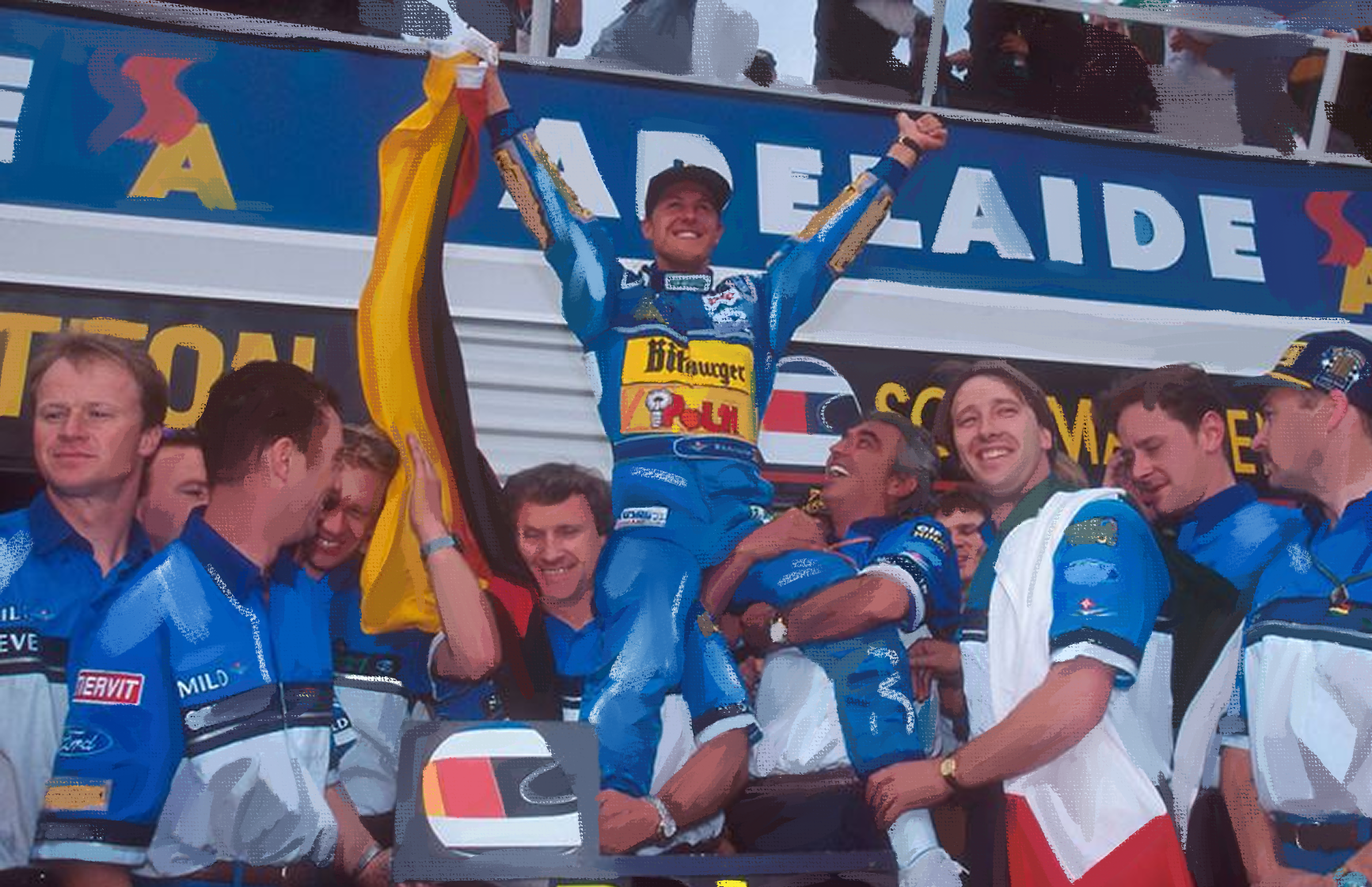 А владелец команды Флавио Бриаторе жёстко стоял на страже политических и финансовых интересов своего детища. Хилл, будучи по мнению многих относительно посредственным гонщиком за рулём классного болида «Уильямс», никогда не приблизился бы в общем зачёте чемпионата мира к Шумахеру, если бы не закулисная борьба чиновников с «Бенеттоном». Однако к старту решающей гонки в Австралии он отставал от немца всего на один балл в «турнирной таблице».