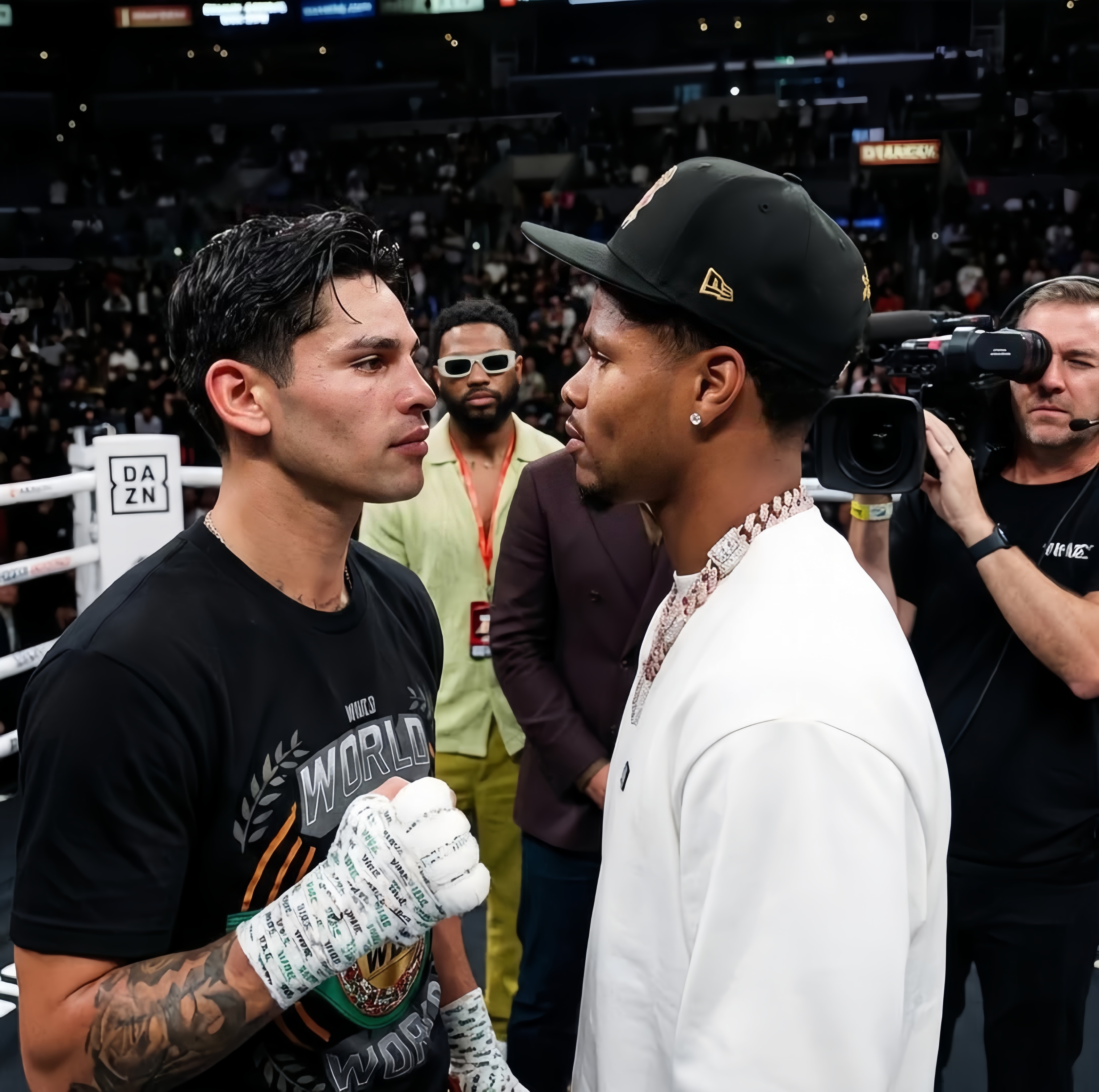 Прямо в ринге Гарсия бросил вызов другому новоиспеченному чемпиону WBO Шакуру Стивенсону, который сидел в первых рядах.