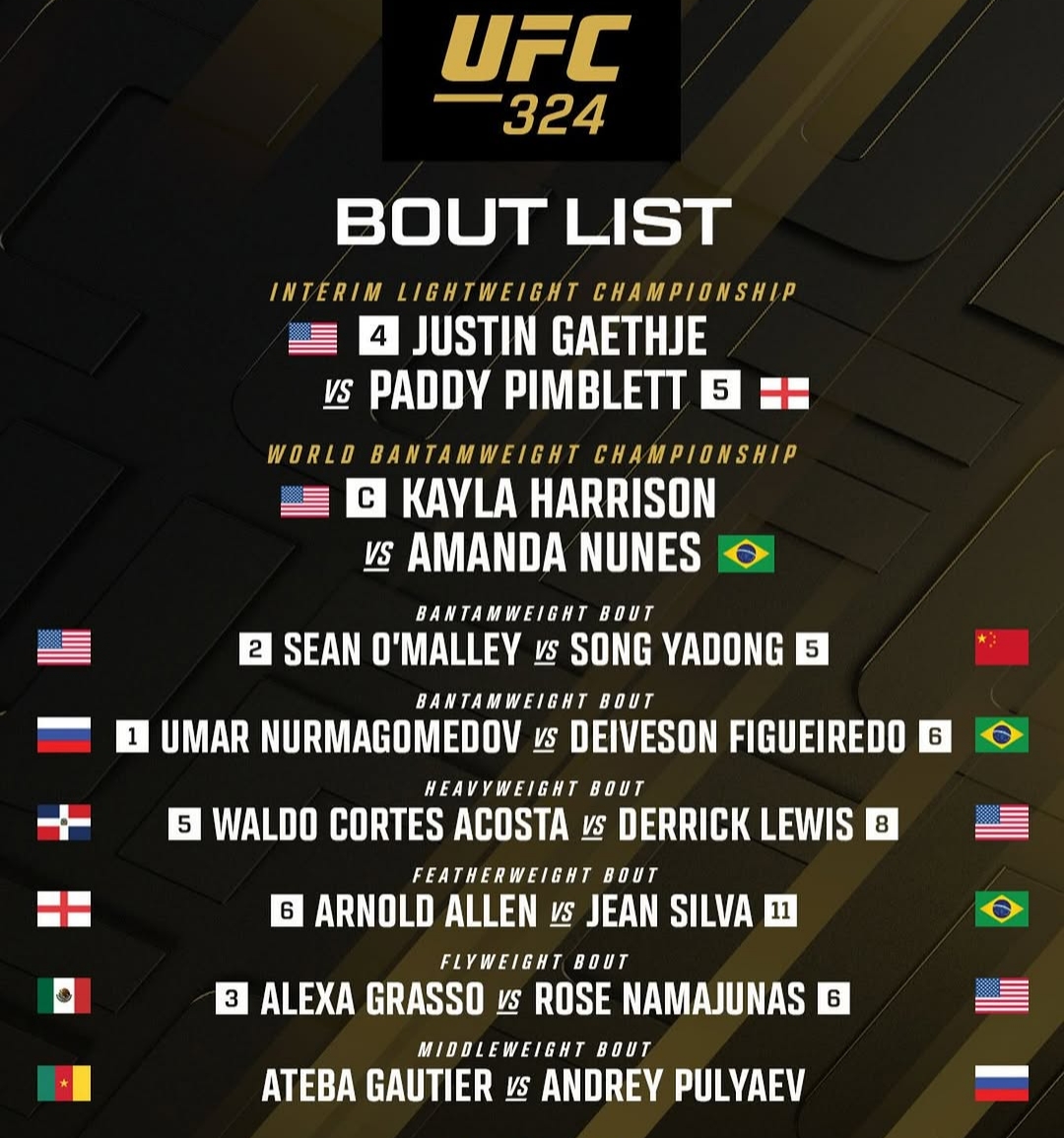 UFC 324: Гейджи – Пимблетт, Харрисон – Нуньес.